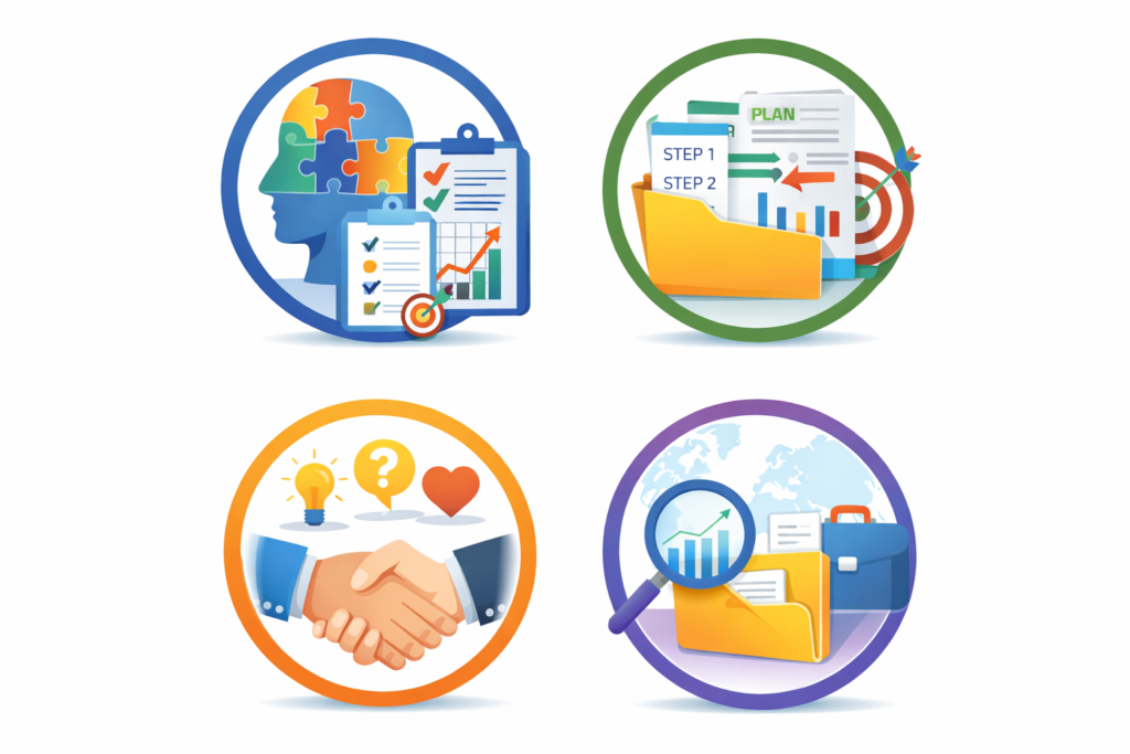 هذه المهارات هي ما يحوّل الجلسة من حوار عادي إلى جلسة إرشاد مهني ناجحة ومرضية.